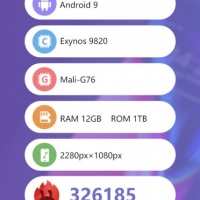 Tech Specs from the Galaxy S10 Plus AnTuTu Benchmark . Display: Full HD+ 2280 x 1080 pixels . Operating System: Android 9 .0 Pie . Processor: Exynos 9820 . GPU: Mali-G76 . Memory: 12GB RAM . Storage: 1TB . We are just 5 days away from the launch of the Samsung Galaxy S10 Plus , stay tuned for more leaks and news about the device .
