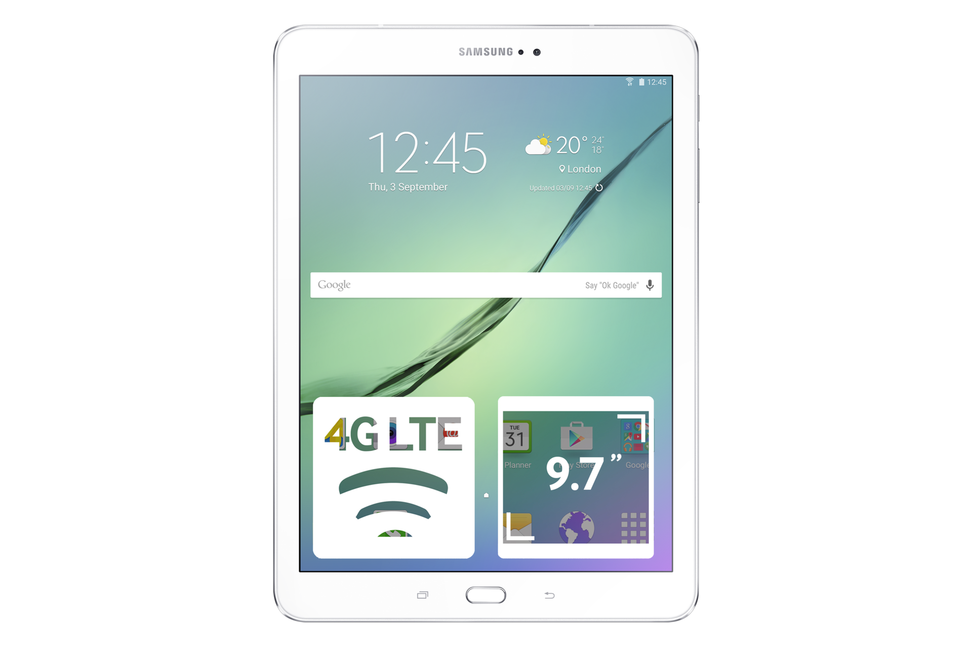 Samsung Galaxy Tab S2 9 .7 Android tablet . Announced Jul 2015 . Features 9 .7″ display, Exynos 5433 chipset, 8 MP primary camera, 2 .1 MP front camera, 5870 mAh battery, 64 GB storage, 3 GB RAM .