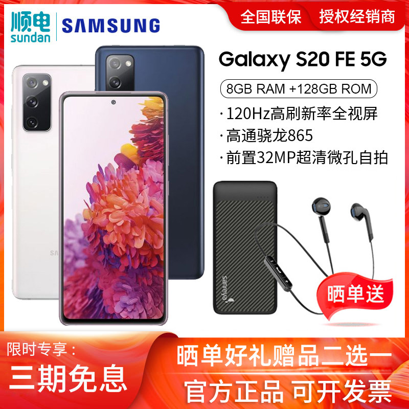 Samsung Galaxy S20 FE 5G Android smartphone . Announced Sep 2020 . Features 6 .5″ display, Snapdragon 865 chipset, 4500 mAh battery, 256 GB storage, 8 GB RAM .