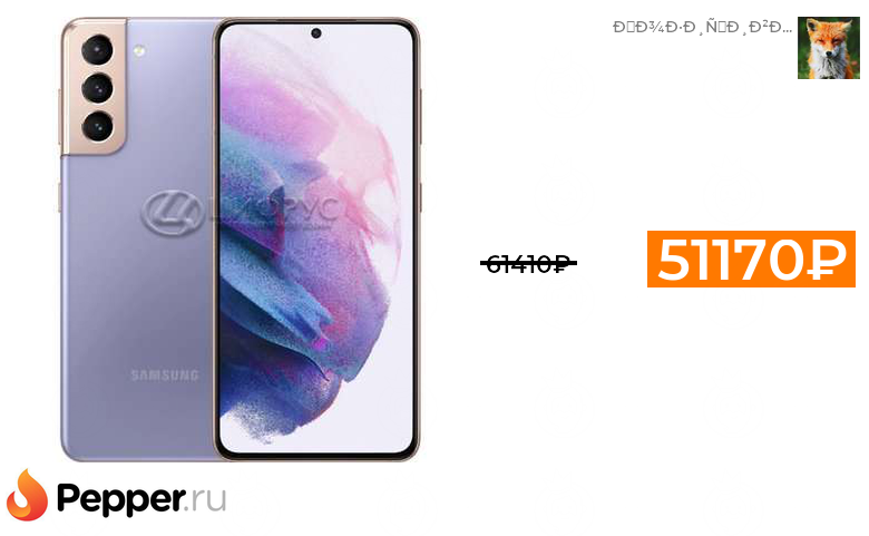 Смартфон Samsung Galaxy S21 5G 8/128Gb Purple (РСТ) 51 170₽ 61 410₽ (-17%) Другие цвета дороже Цена вроде как неплохая, телефон топ 12 в тесте antutu Цена без всяких там рассрочек и кредитов