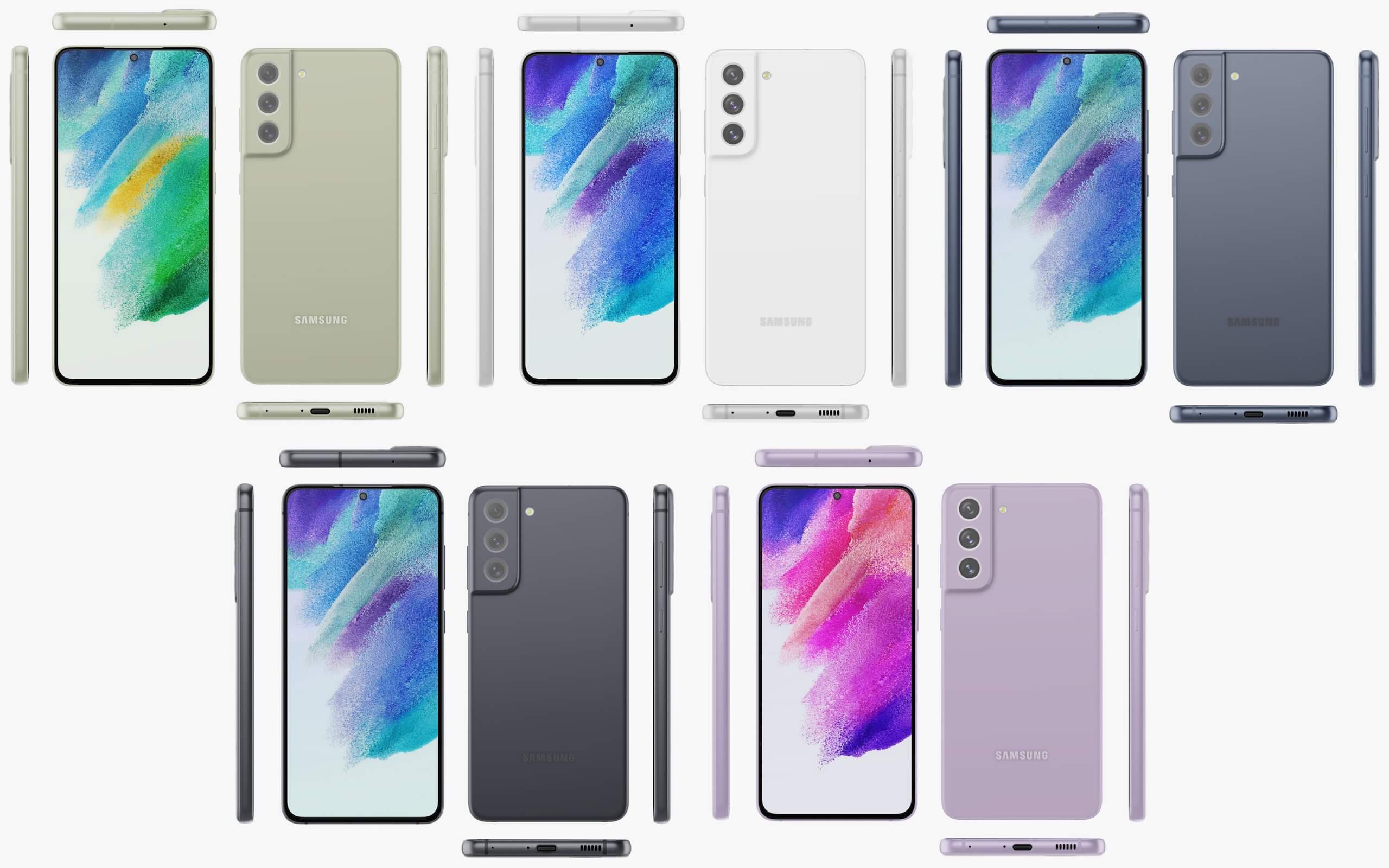 Galaxy S21 FE представлен в различных цветовых вариациях, включая нестандартные оттенки: мятном, лавандовом, салатовом .