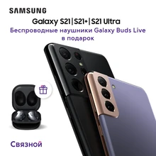 Заказывай новые Galaxy S21 . За оформленный предзаказ на Galaxy S21 Ultra, S21+ или S21 ты получишь в подарок беспроводные наушники Galaxy Buds Pro или Galaxy Buds Live, а также Bluetooth-маячок Galaxy Smart Tag .