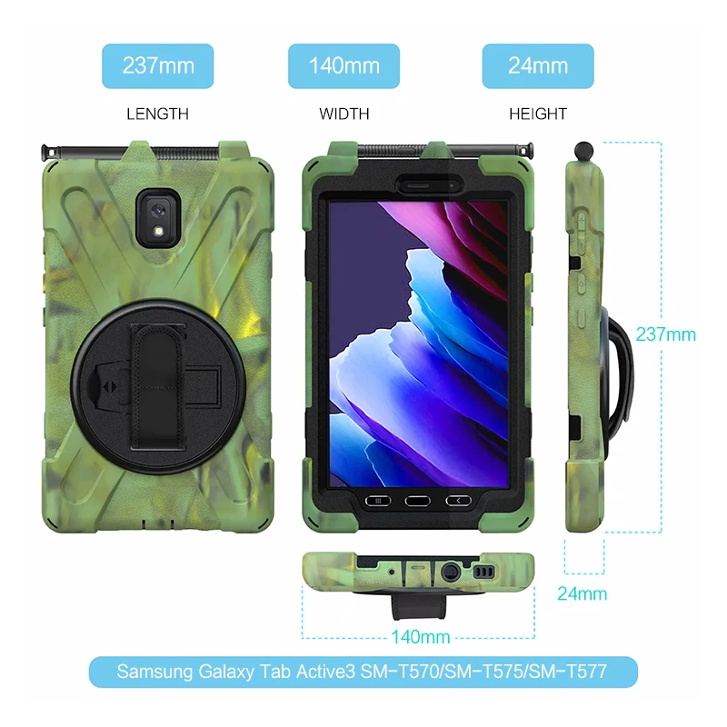 This item: Rantice Samsung Galaxy Tab Active 3 8 .0 Case, Heavy Duty Rugged Shockproof Drop Protection Case with 360 Stand, Handle Hand Strap & Shoulder Strap for Galaxy Tab Active3 8" 2020 T570/T575/T577 (Black) $19 .99 . In Stock .