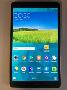 Samsung Galaxy Tab S 8 .4 Android tablet . Announced Jun 2014 . Features 8 .4″ display, Exynos 5420 Octa chipset, 8 MP primary camera, 2 .1 MP front camera, 4900 mAh battery, 32 GB storage, 3 GB RAM .