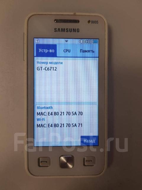 Samsung GT -C6712 from Star 2 Duos series . 3 .2 inches, (~47 .5% screen-to-body ratio) 240 x 400 pixels, (~146 ppi density) 100 g (3 .32 oz) Removable Li-Ion 1200 mAh--NA . May, 2011 . Buy accessories on Amazon . Home → Series → Star 2 Duos . . .