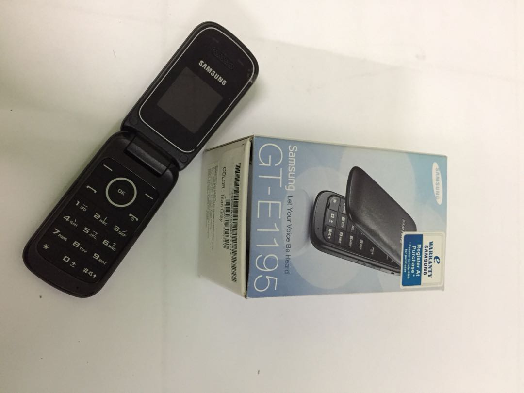 The Samsung E1195 is an affordable flip phone . It is also known as GT-E1195 . Standard features . Alarm, Calendar, FM Radio, Game, Screen Torch Light, Timer, Stopwatch, Calculator, Converter . References
