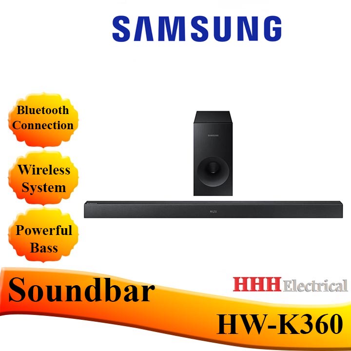 HW-K360 Soundbar w/ Wireless Subwoofer . From $ 199 .99 with recycle θ with eligible trade-in θ . $ 16 .67 /mo for 12 mos ⊕ with Samsung Financing; Total $ 199 .99 ⊕ . with Samsung Access . From Total $ 199 .99 with recycle θ with eligible trade-in θ . Or $ 16 .67 /mo .