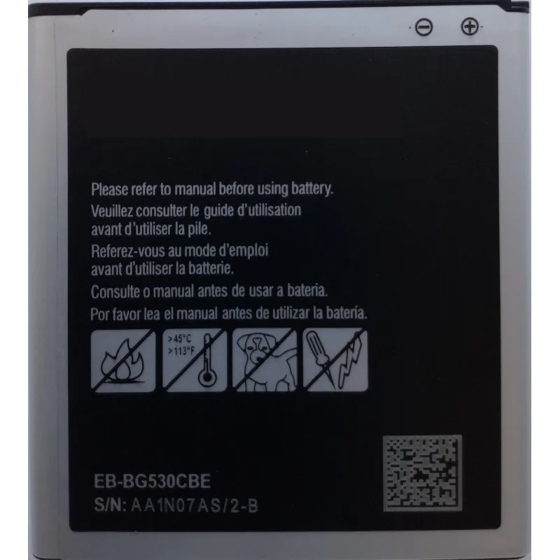 Аккумулятор для телефона Samsung (EB-BG530BBC) SM-G530H, SM-G5309W, SM-G531H, SM-J500H . Подходит к телефонам: Samsung Galaxy Grand Prime SM-G530H, SM-G5309W, Samsung Galaxy Grand Prime VE Duos SM-G531H, Galaxy J5 SM-J500H, Galaxy J2 Prime SM-G532F, Samsung Galaxy J3 (2016) SM-J320F . Совместимые P/n: EB-BG530BBC, EB-BG530BBE, EB-BG530CBE .