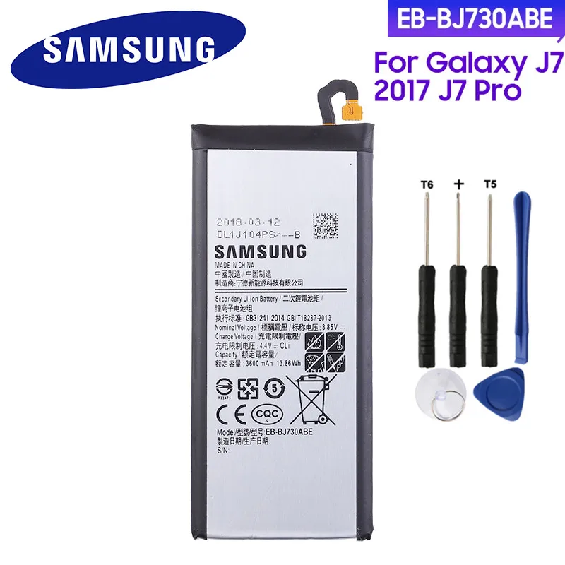 Samsung Galaxy J7 (2017) Android smartphone . Announced Jun 2017 . Features 5 .5″ display, Exynos 7870 Octa chipset, 13 MP primary camera, 13 MP front camera, 3600 mAh battery, 16 GB storage, 3 GB RAM .