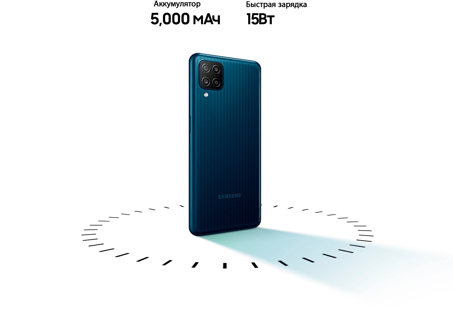 Galaxy M12 is ready for any task at hand with an octa-core processor, advanced quad camera system and high-capacity 5,000 or 6,000mAh battery .