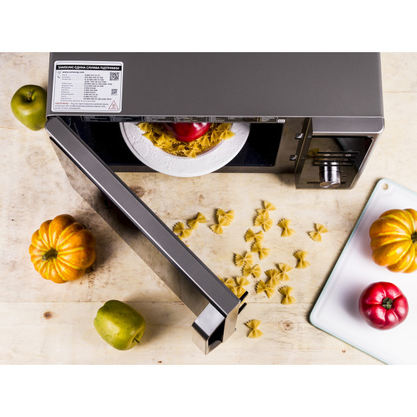 Микроволновая печь Samsung MS23F302TAS серебристый Отзывы 23 л, 800 Вт, переключатели - поворотный механизм, кнопки, дисплей, 48 .9 см x 27 .5 см x 37 .4 см подробнее