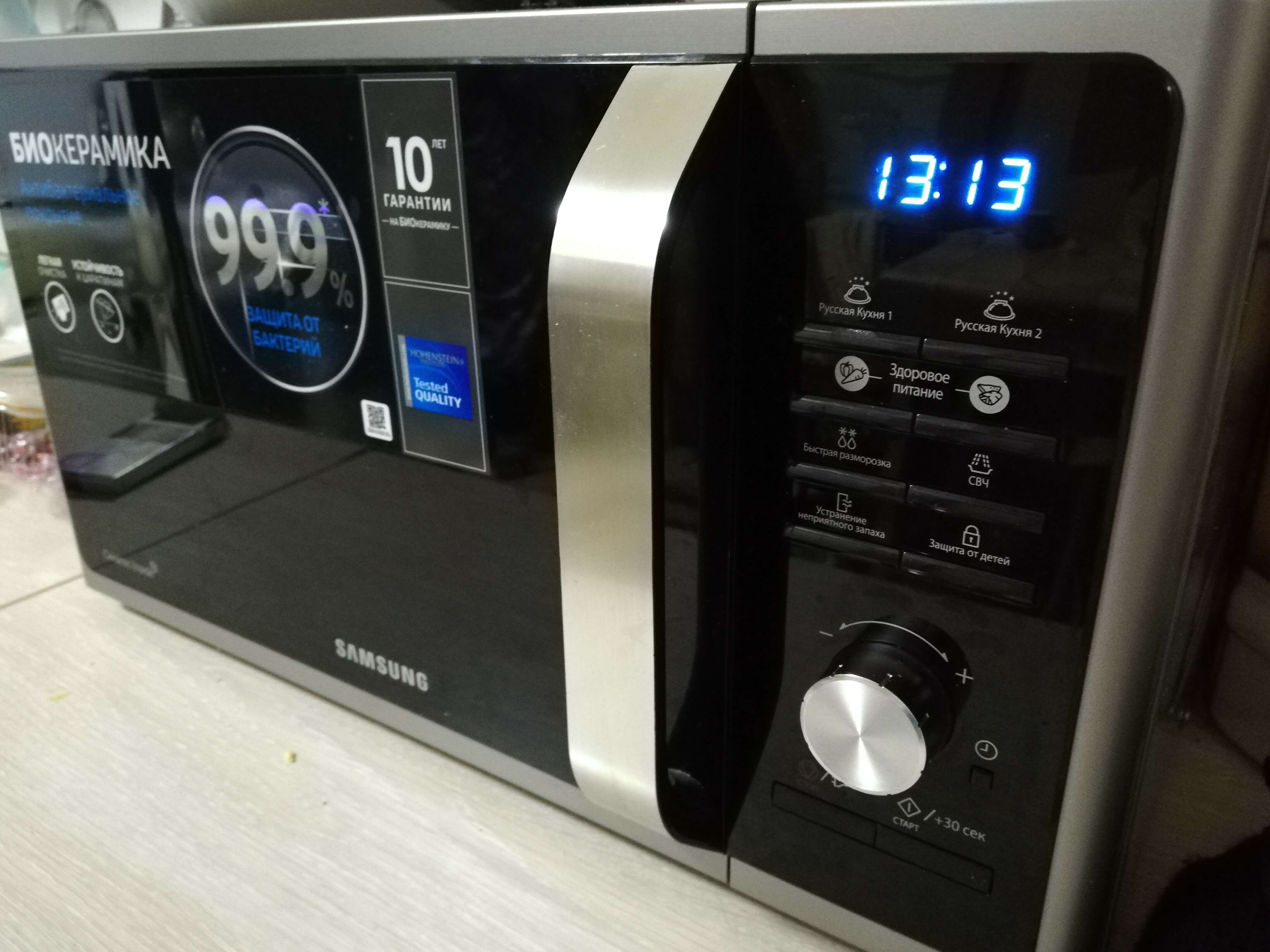 SAMSUNG MS23F302TAS отзывы . привезли . Покрытие биокерамика, может чистится будет лучше (надеюсь) . Без меры режимов . Так с виду выглядит не плохо . Короткие ножки, (клиренс низкий:-)), из за этого задевает . . .