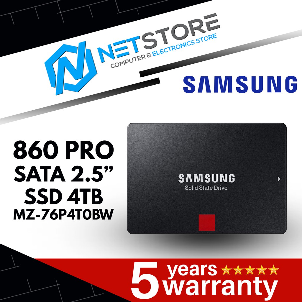 MZ-76P4T0BW 860 PRO SATA 2 .5" SSD 4TB . MZ-76P4T0BW . Share your product experience . Share your product experience . 860 PRO SATA 2 .5" SSD 4TB . . . . Samsung is not responsible for any errors, omissions or misdirected or lost orders, or orders which may be delayed . Samsung reserves the right to modify pricing and modify or cancel promotions at any . . .