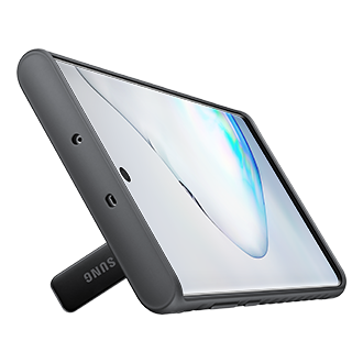 Help defend your new Galaxy Note 10 Plus / Note 10 Plus 5G against damage caused by drops and falls . The Protective Standing Cover has been drop-tested to provide outstanding protection . The design offers heavy-duty protection while still allowing you to see the whole Infinity Display, and the built-in kickstand holds your phone at an optimal viewing angle for movies & videos .