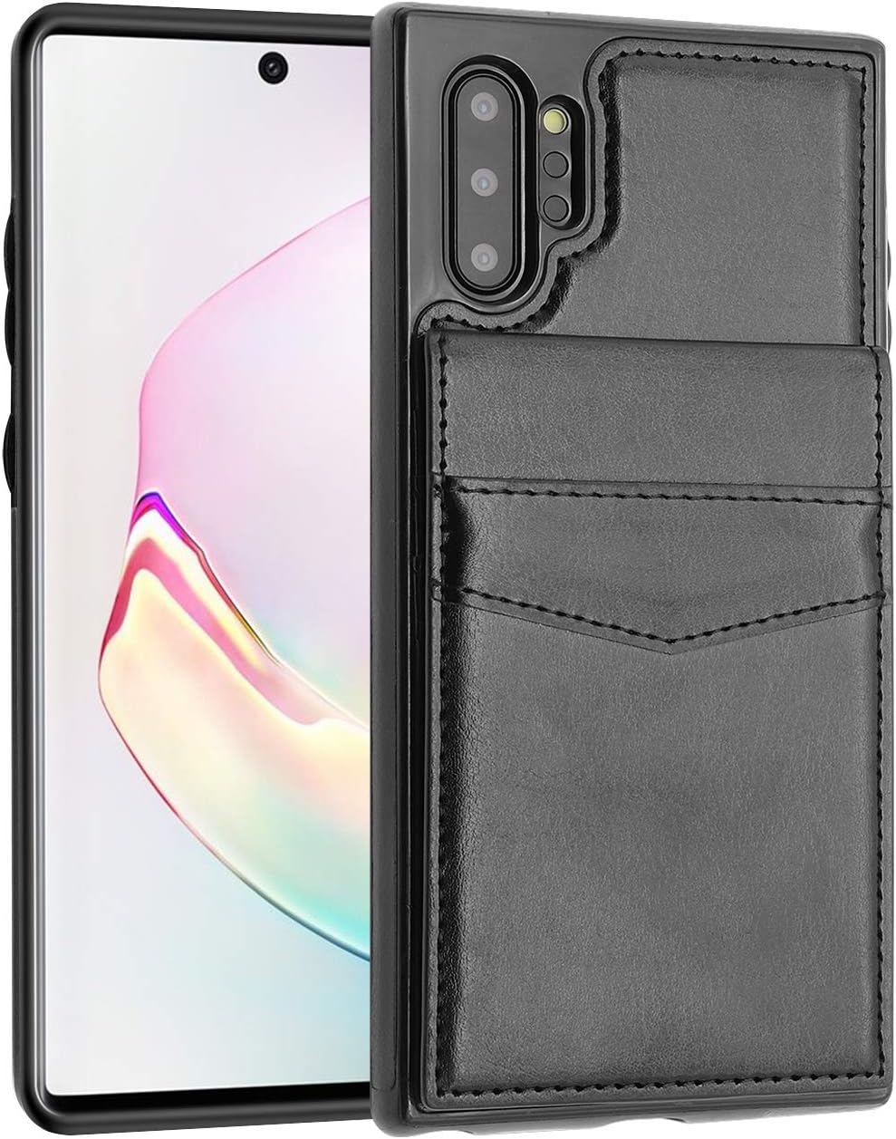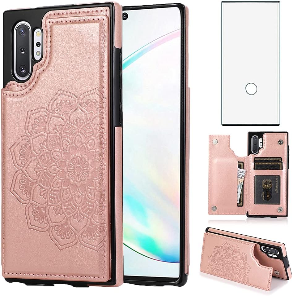 The detachable leather phone case keeps the back of your Note 10 Plus safe from scratches and drops, while the wallet section of the case folds over the screen, providing 360-degree protection . . .
