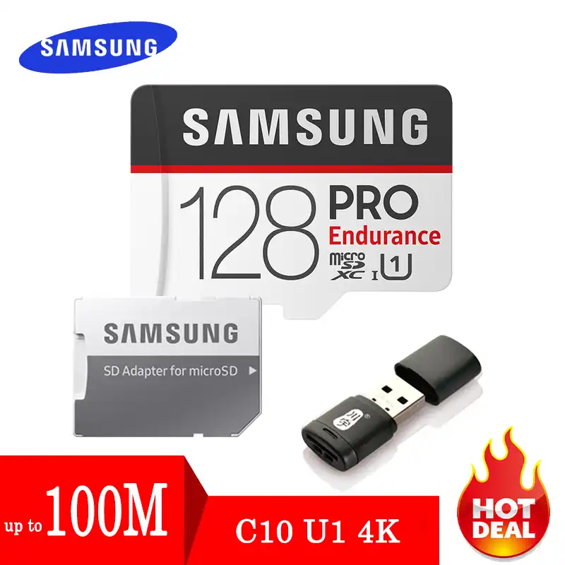 Samsung MicroSDXC 128GB PRO Endurance + SD adaptér . Paměťová karta micro SDXC, 128 GB, čtení až 100 MB/s, zápis až 30 MB/s, Class 10, UHS-I . Koupit 899,- . Skladem > 5 ks . Technické specifikace se mohou změnit bez výslovného upozornění . Obrázky mají pouze informativní charakter . Běžná cena znamená výrobcem/dodavatelem . . .