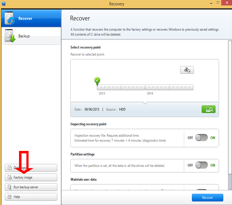 To help users troubleshoot their computer, Samsung provides a specialized backup & restore application— Samsung Recovery Solution . From Windows XP to Windows 7 , the software has upgraded from Samsung Recovery Solution 3 to 5 . With Samsung Recovery Solution 5 in Windows 7 , you can: Backup and restore personal files .