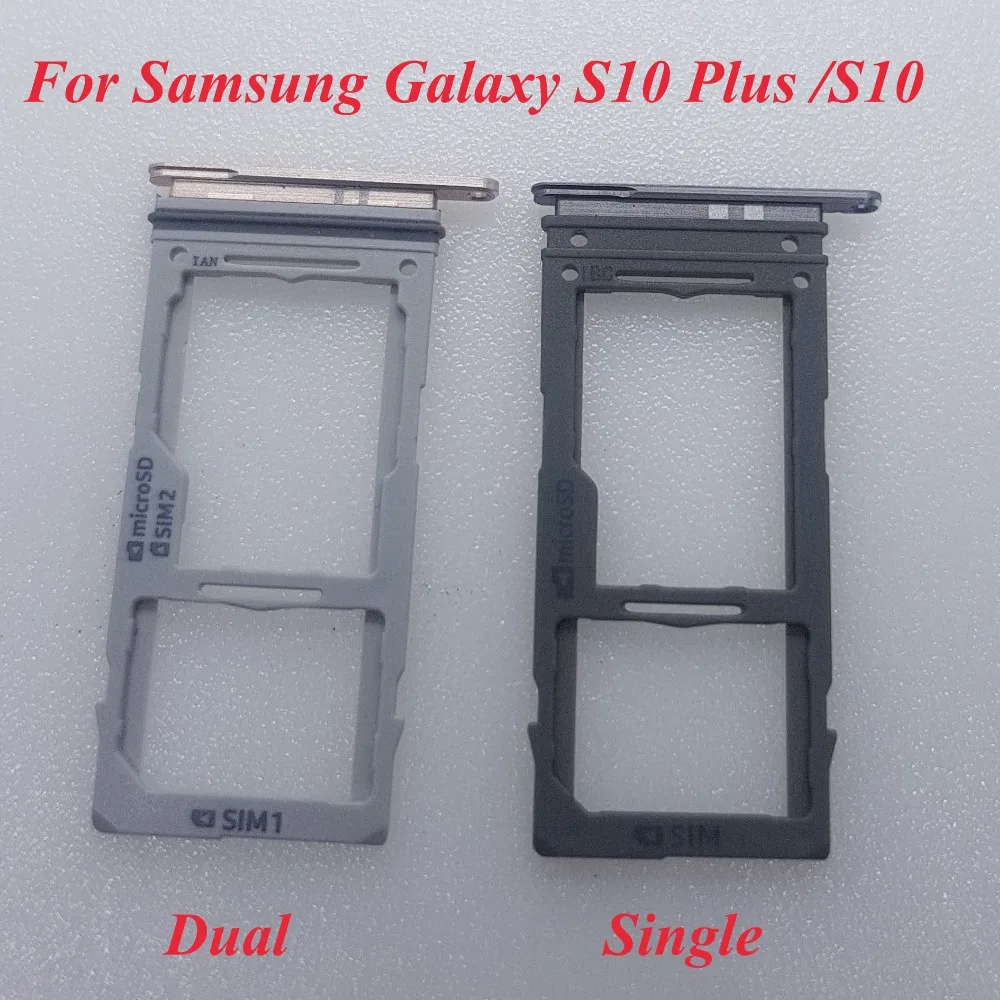 Galaxy S10+ Single SIM model: one Nano SIM and one MicroSD slot (up to 512GB) Dual SIM model (Hybrid SIM slot): one Nano SIM and one Nano SIM or one MicroSD slot (up to 512GB) *Availability may vary depending on country and carrier . * SIM card sold separately . Availability of Dual SIM may vary depending on country and carrier .