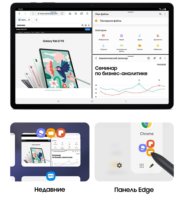 Equipped with a high-performing Snapdragon 778 G chipset, Galaxy Tab S7 FE keeps your streaming and gaming smooth and fast . You can multi-task with ease and launch up to three apps all at once . And with over 1 TB of storage when you use a microSD card, your important files can stay at hand .