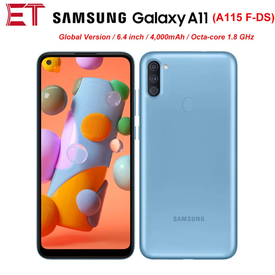 Samsung SM-A115F from Galaxy A11 series . 6 .4 inches (~81 .6% screen-to-body ratio) 720 x 1560 pixels (~268 ppi density) 177 g (6 .24 oz) Non Removable Li-Ion 4000 mAh . 1 .8 GHz . 3GB . Android R 11 . March 2020 . Buy accessories on Amazon . Home → Series → Galaxy A11 . . .