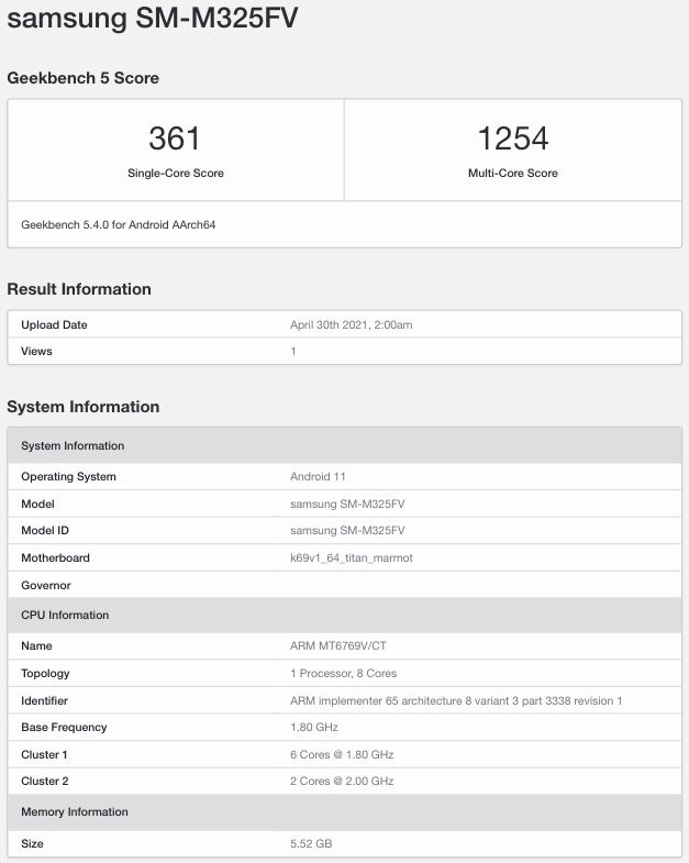 Samsung Galaxy M32 SM-M325FV Specifications and Features Overview: The Samsung Galaxy M32 SM-M325FV is an Android Smartphone from Samsung's Galaxy M series . Its dimensions are 160 x 74 x 9 mm, and it weighs 196g . This Samsung Smartphone is powered by Mediatek Helio G80 CPU and Mali-G52 MC2 GPU ( Octa-Core processor) And runs Android 11 (One . . .