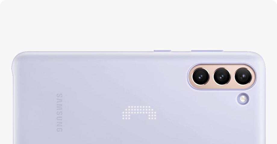 The Smart LED Cover displays text, icons and animations on the back of the phone . Easily display a message or your mood of the day by placing your phone facedown, picking it up or shaking it . *It is recommended to remove the cover from Galaxy S21 5G before using Wireless PowerShare .