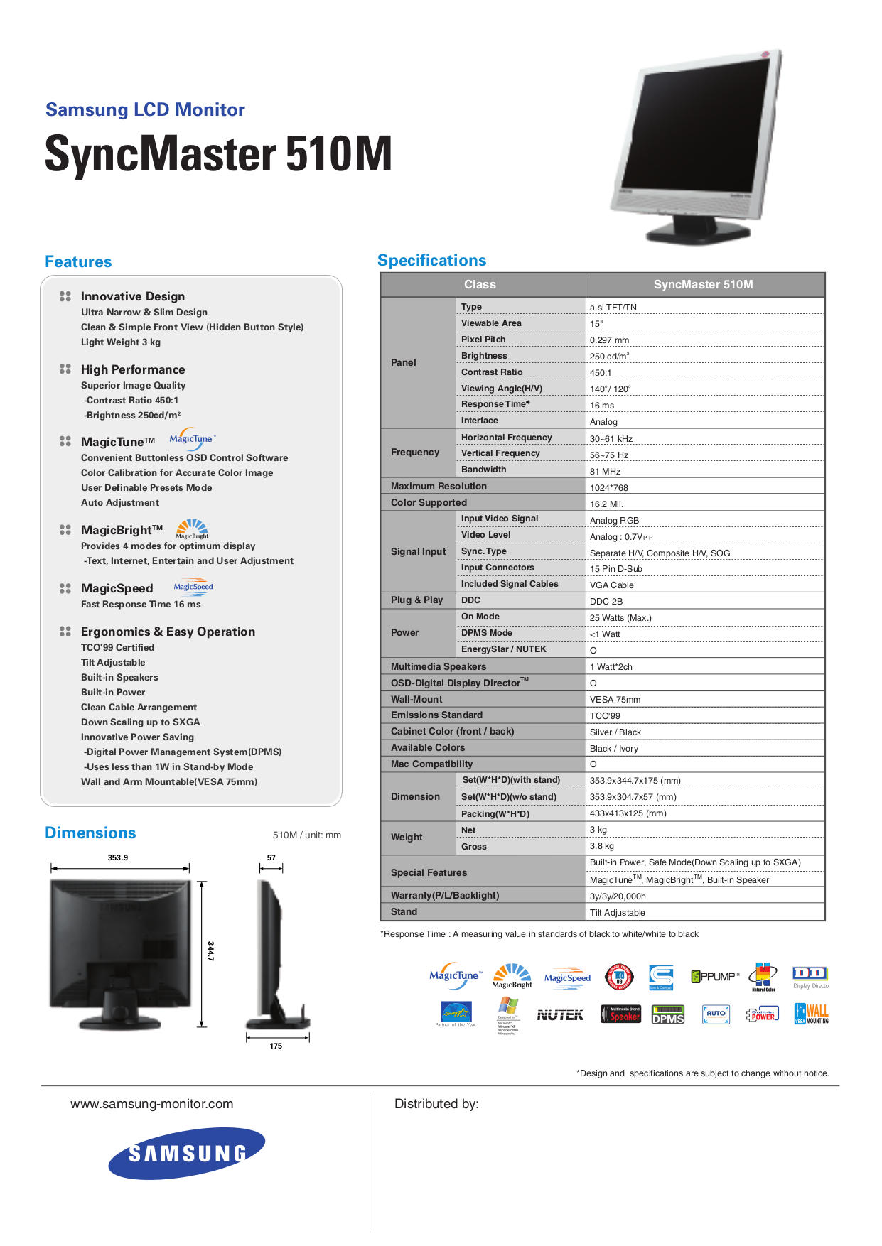 Samsung SyncMaster 510MP - LCD monitor - 15" Series Specs . . .