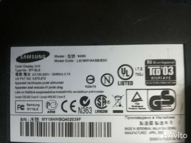 943N 19" LCD monitor | Samsung Service NL