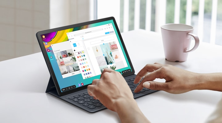 Less is truly more with Samsung Galaxy Tab S5e . Ultra-light for on-the-go . Lightweight design to keep you comfortably connected to what you enjoy most . At 5 .5mm thin and weighing around 400g, Galaxy Tab S5e is our slimmest tablet yet . Relax or roam free while watching movies without feeling bogged down .