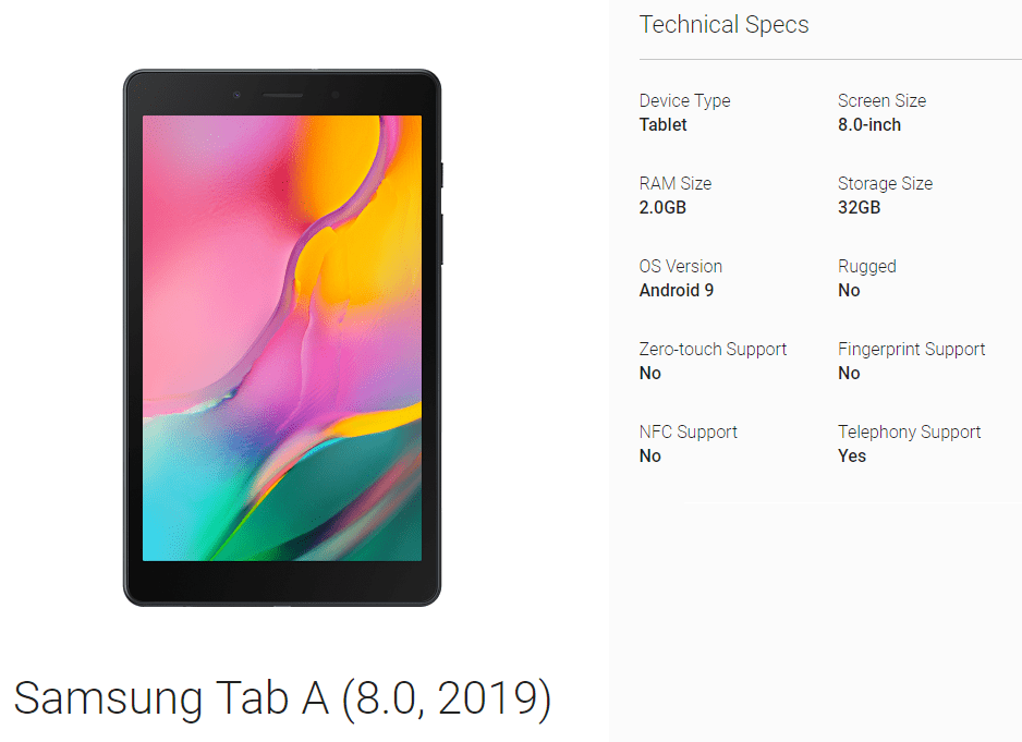 Samsung galaxy tab размеры