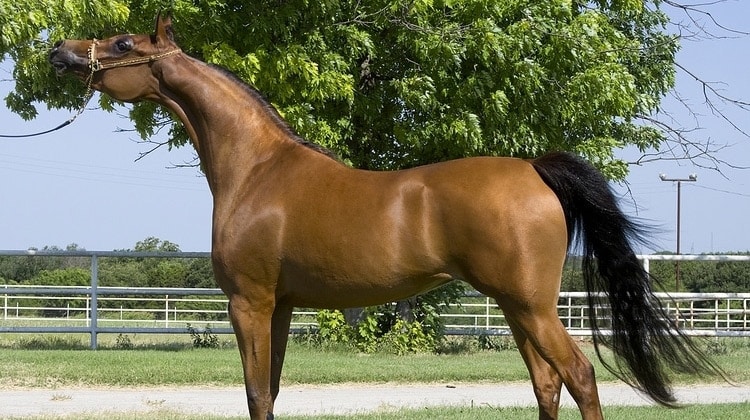 Конь имеет отличную мускулатуру, крепкие изящные ноги и развитую грудную клетку, что можно увидеть на снимке . Самые дорогие лошади этой породы имеют вороновый окрас . 1 .