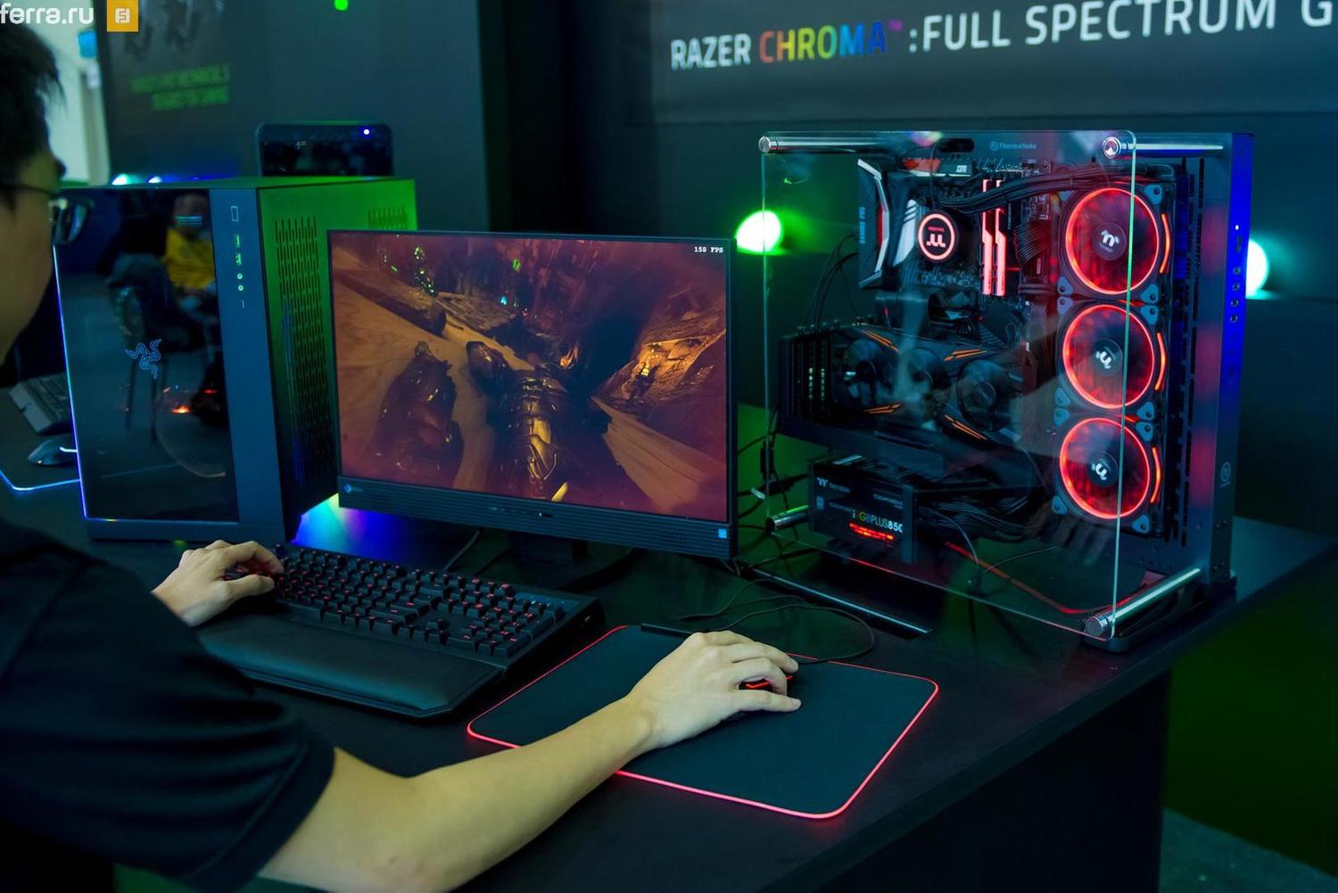 Смотрите далее красивые картинки про компьютеры . Большой размер монитора . Современный черный компьютер . Клавиатура, удобная мышка . Наушники, цветной системный блок .