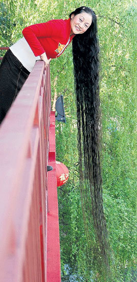 В китайском Нанкине прошел конкурс на самые длинные волосы . Фото взято здесь .