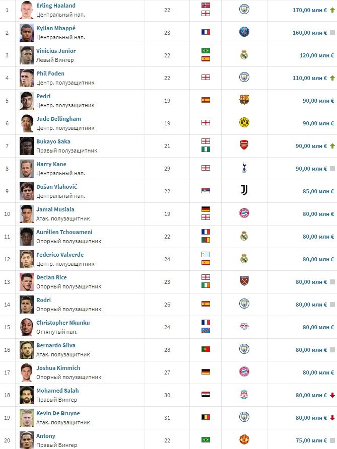Самые дорогие футбольные составы 138 фото