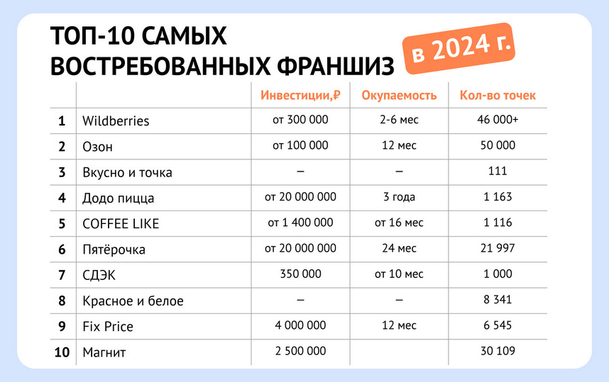 Самые окупаемые франшизы партнеркин