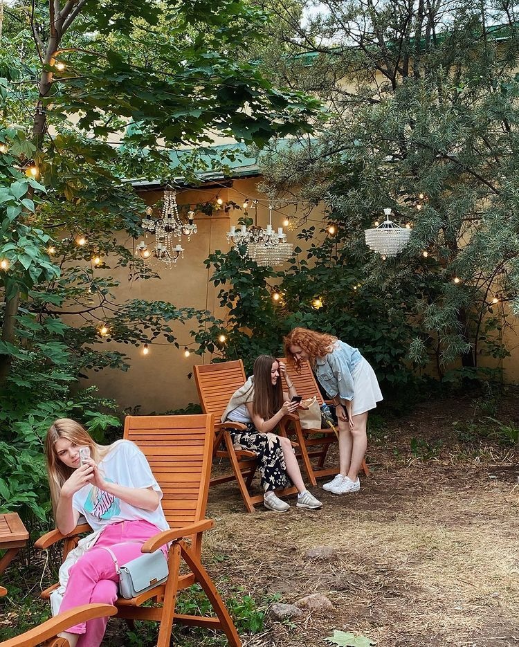 Во уютном дворе особняка XIX века Лопухиных и Нарышкиных проводятся кинопоказы на большом экране, выставки картин и арт-объектов современных художников, а также грандиозные вечеринки с местными диджеями для совершеннолетних жителей города с коктейлем «Апероль Шприц», шампанским и устрицами А почти у самого входа вас ждет необычная инсталляция художницы Алины Глазун «Страшновато».