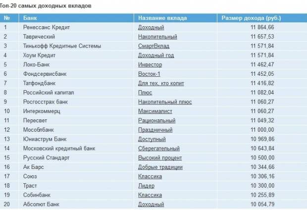 Самые высокие вклады в спб