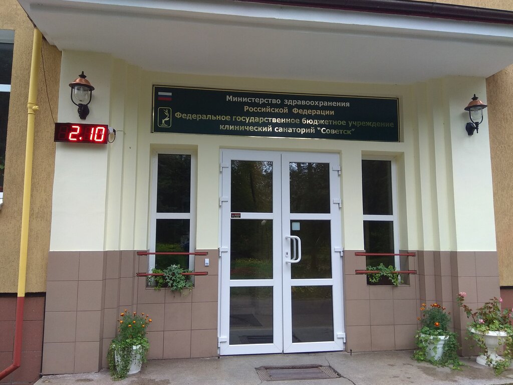 Федеральное государственное бюджетное учреждение клинический санаторий "Советск" Министерства здравоохранения Российской Федерации . 238754, Калининградская область, Советск, ул . Полевая, д . 4 . Калининград,аэропорт"Храброво",автобусы до г .Советска .