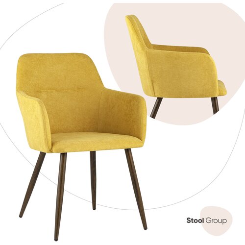 Sandalye King sarı Tabure GrubuŞık ve yumuşak sandalyenin geniş ergonomik sırtı ve rahat kolçakları vardır. Döşeme yüksek kaliteli yoğun kumaştandı. Bacaklar metalden yapılmıştır.