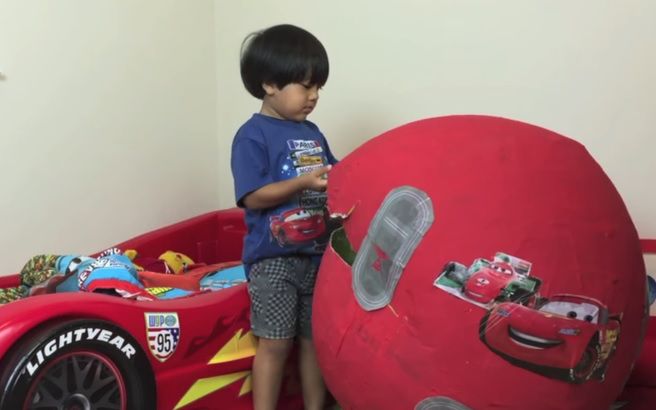 Książę Karol bawi się samochodem zabawką