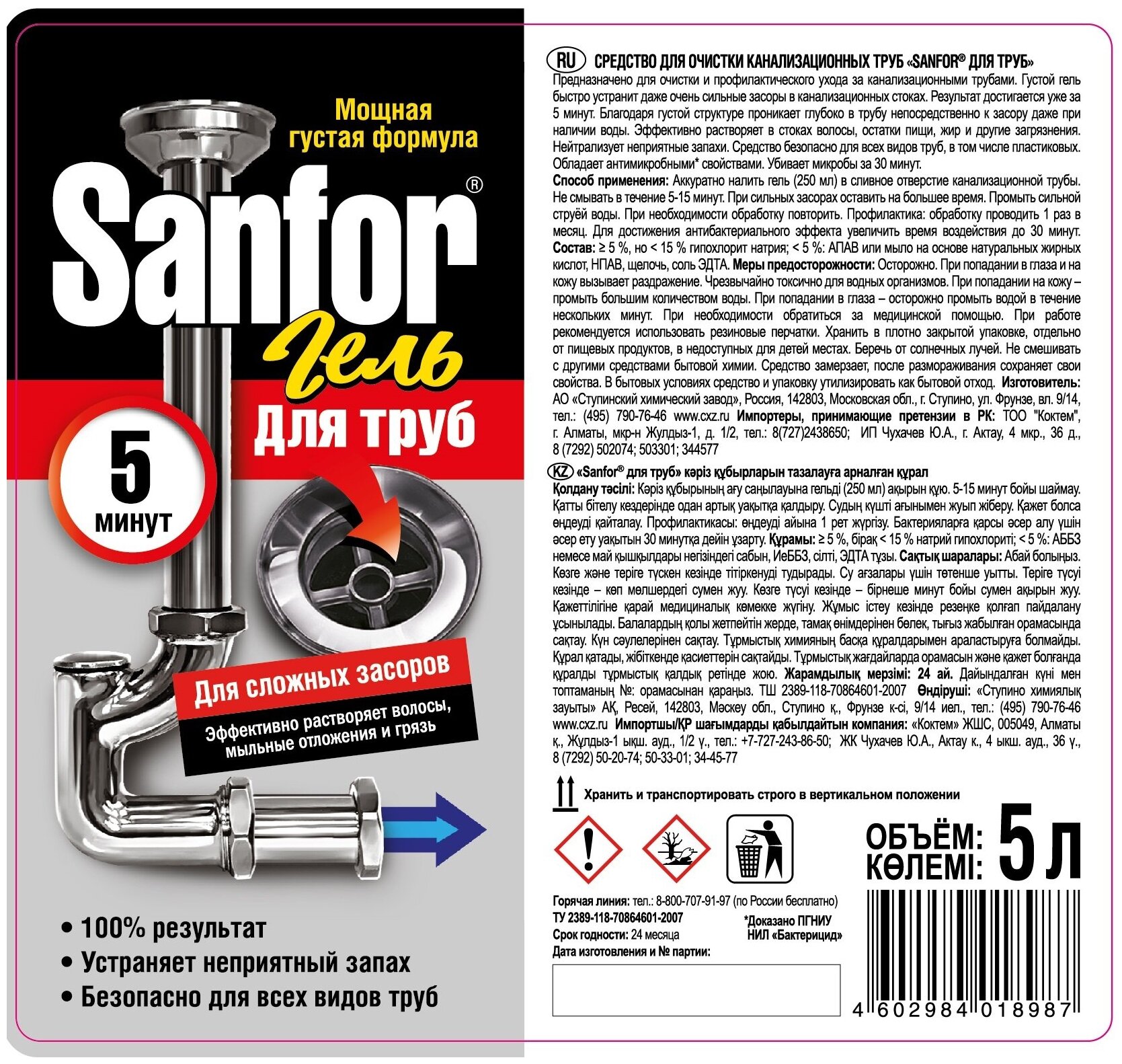 Sanfor гель для труб . Очень неприятно, когда, к примеру, начинаешь мыть посуду, а вода никак не проходит . Значит засорились трубы и надо экстренно что-то делать . +1 фото . Гель Sanfor быстро и эффективно справляется с засорами в канализационной трубе! Всего за 5 Минут!