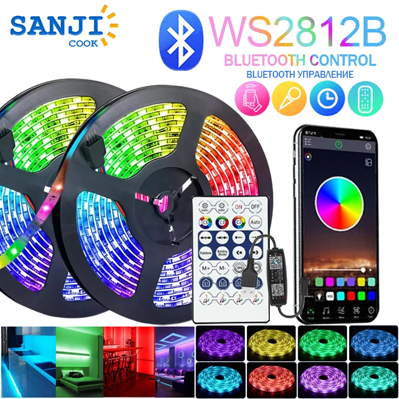 HhPLOCSQheЗдесь вы сможете купить SanjiCook LED Strip Light WS2812b With 28 Key Bluetooth APP Control Color Changing Lights For Decoration Living Room Lamp Ribbon с бесплатной доставкой до вашего почтового отделения.