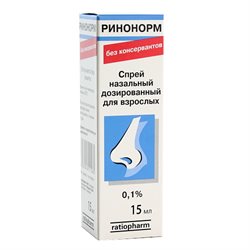 Взрослым и детям старше 10 лет назначают Ринонорм спрей назальный 0 .1% по 1 дозе (1 нажатие на поршневое устройство) в каждый носовой ход не более 3 раз/сут . - Детям в возрасте от 2 до 10 лет назначают Ринонорм спрей назальный для детей 0 .05% по 1 дозе (1 нажатие на поршневое устройство) в каждый носовой ход не более 3 раз/сут . Методика применения