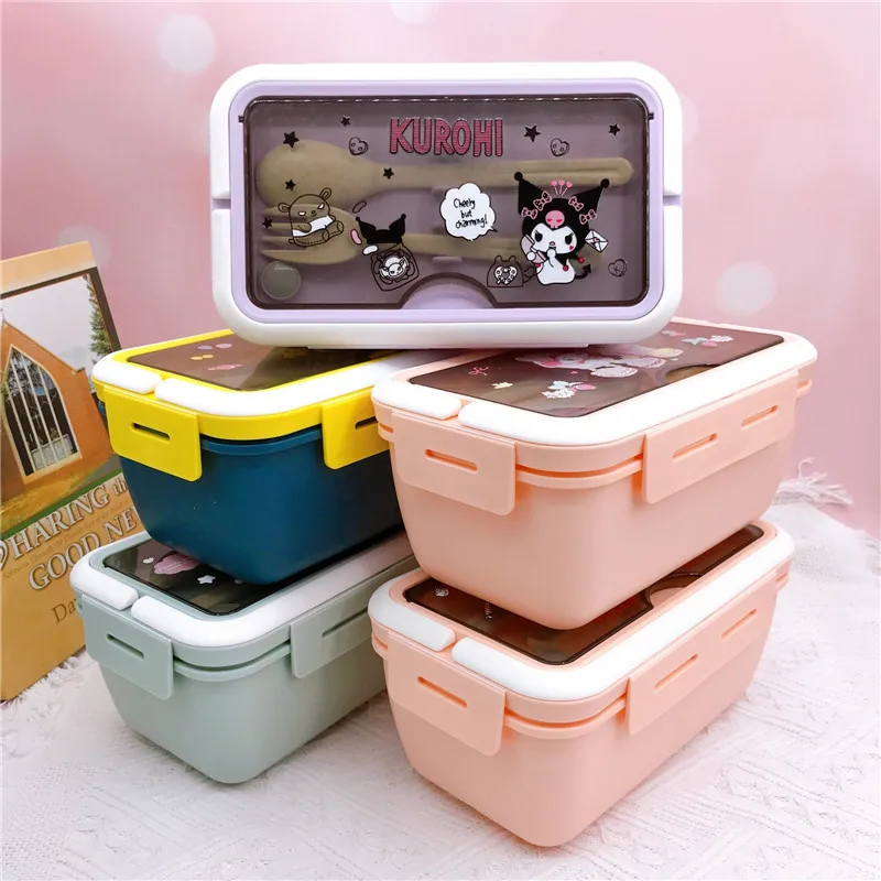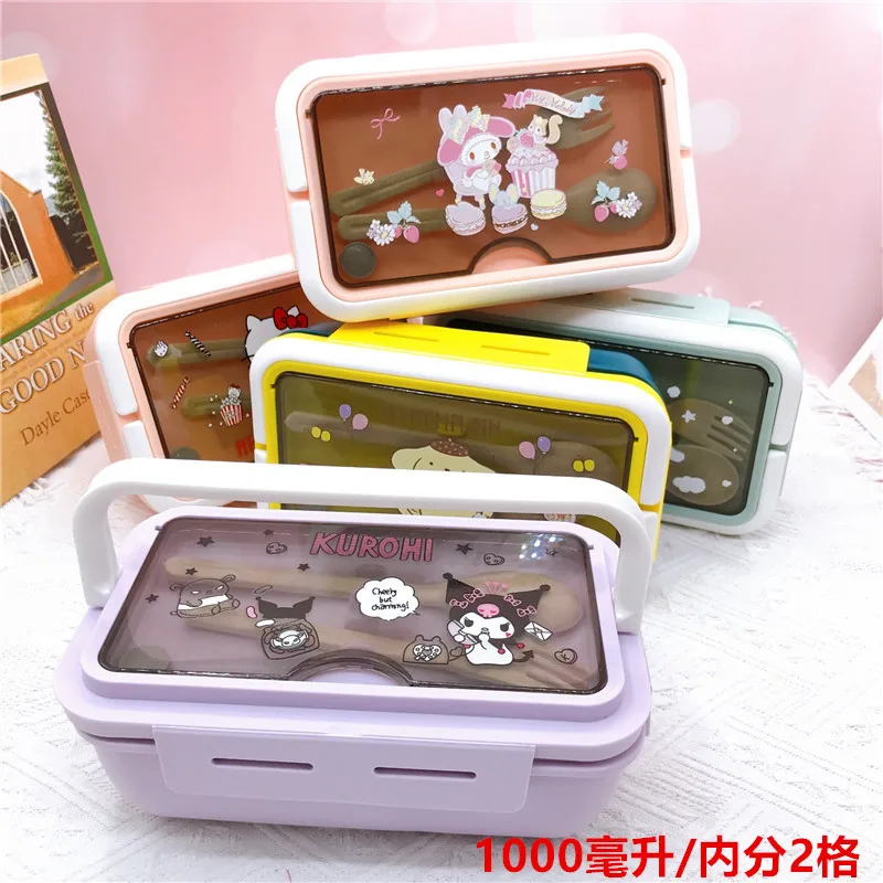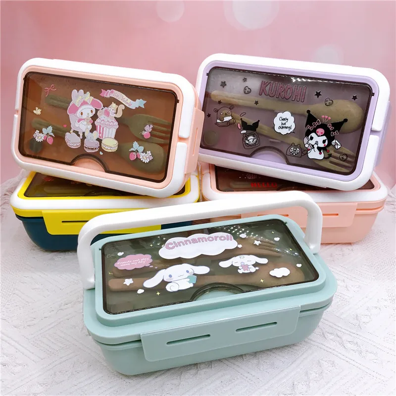 Sanrio Cartoon Three Compartment Lunch Box My Melody Kuromi Hello Kitty Portable Lunch Box Student Compartment with Tableware - Купить с бесплатной доставкой