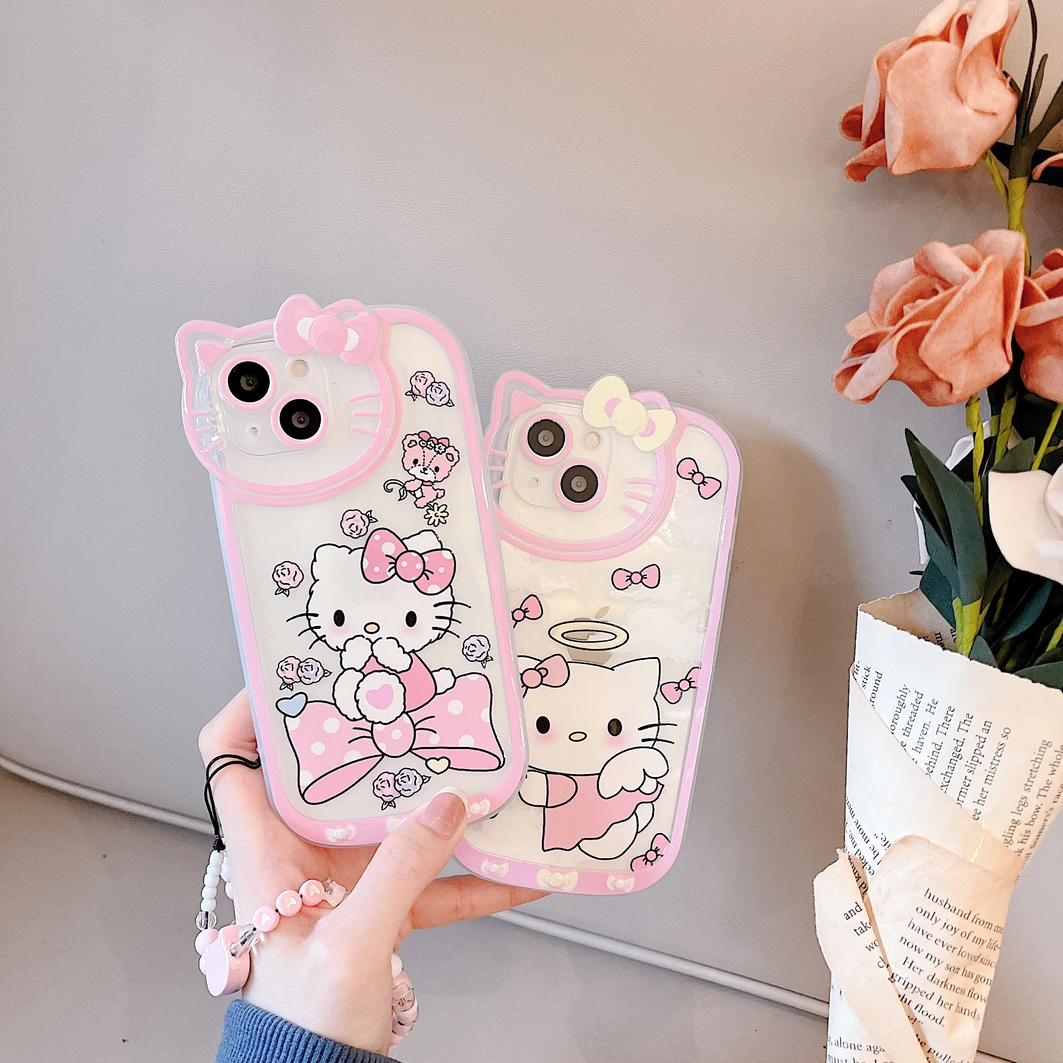«Sanrio Hello Kitty With Pendant Phone Cases For iPhone 13 12 11 Pro Max Mini XR X XS MAX 8 7 Plus SE 2020 Transparent Cover» по лучшей цене на рынке! Всего за 4$ (380рублей)
