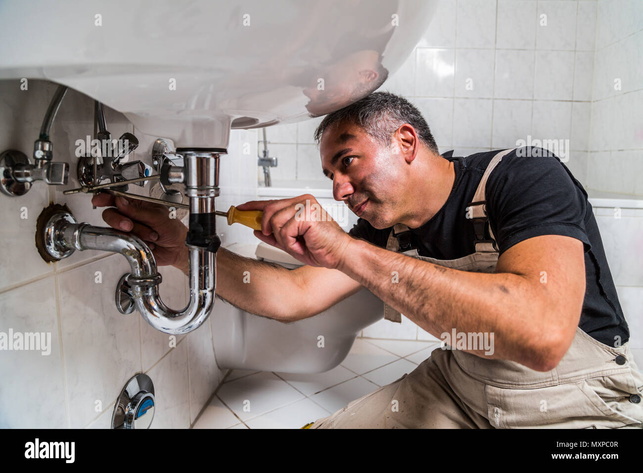 Сантехник чинит трубы