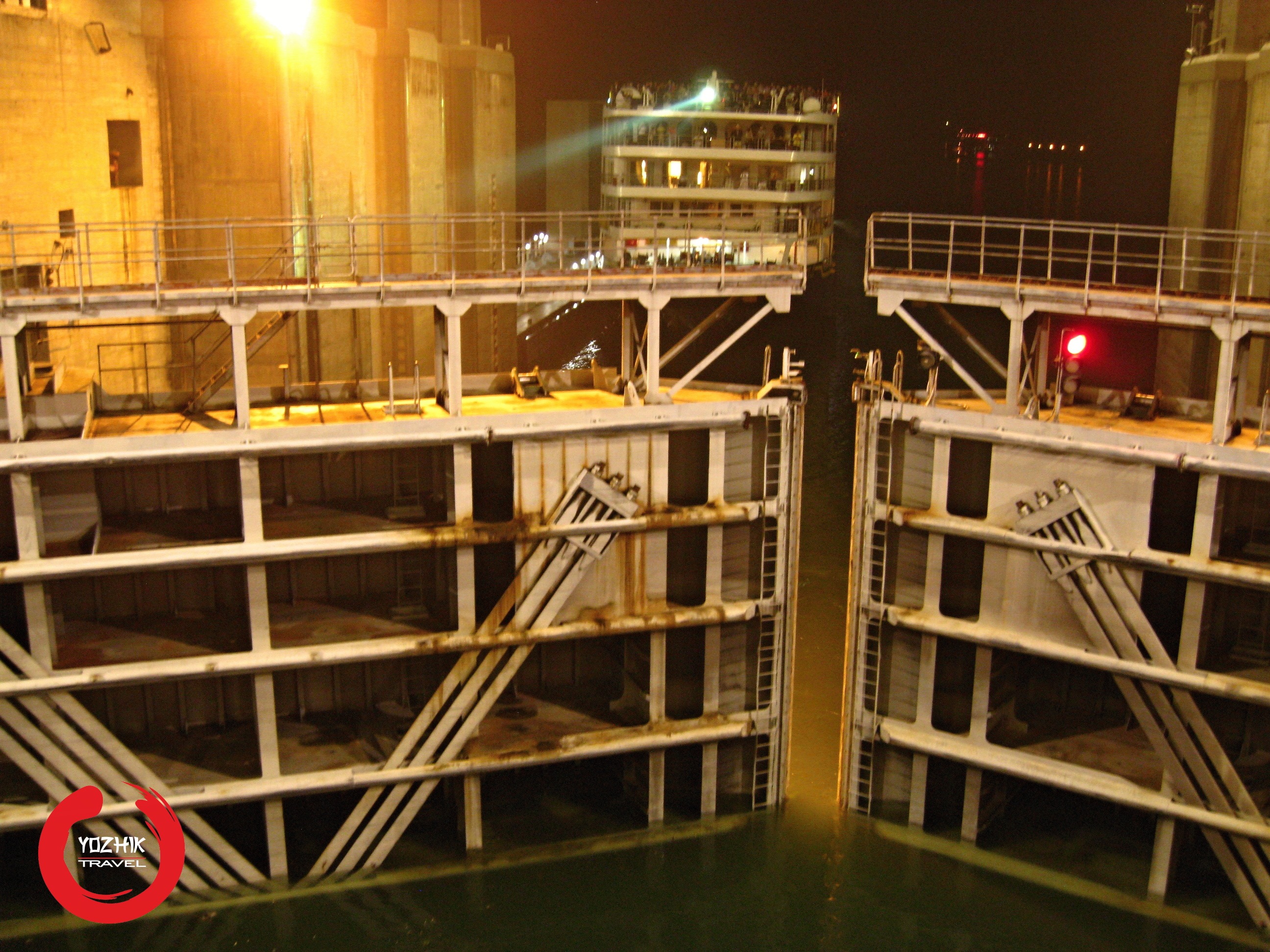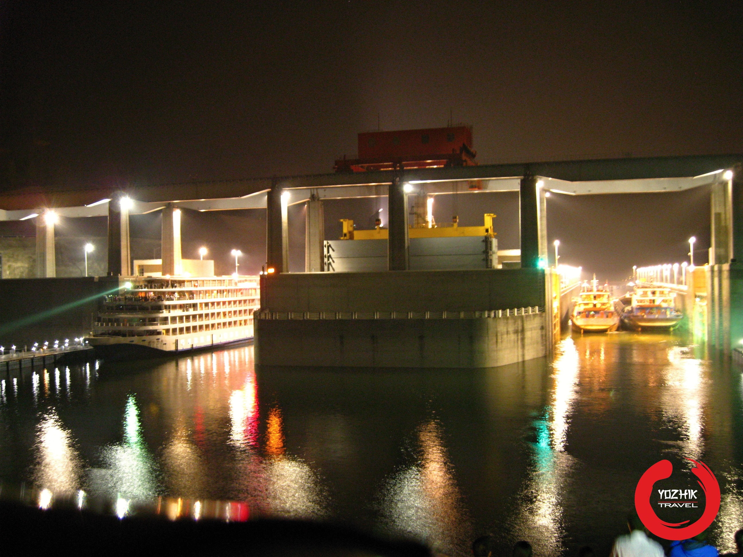 Yozhik TravelПоздно ночью подходим к шлюзам дамбы Трех ущелий (三峡大坝).