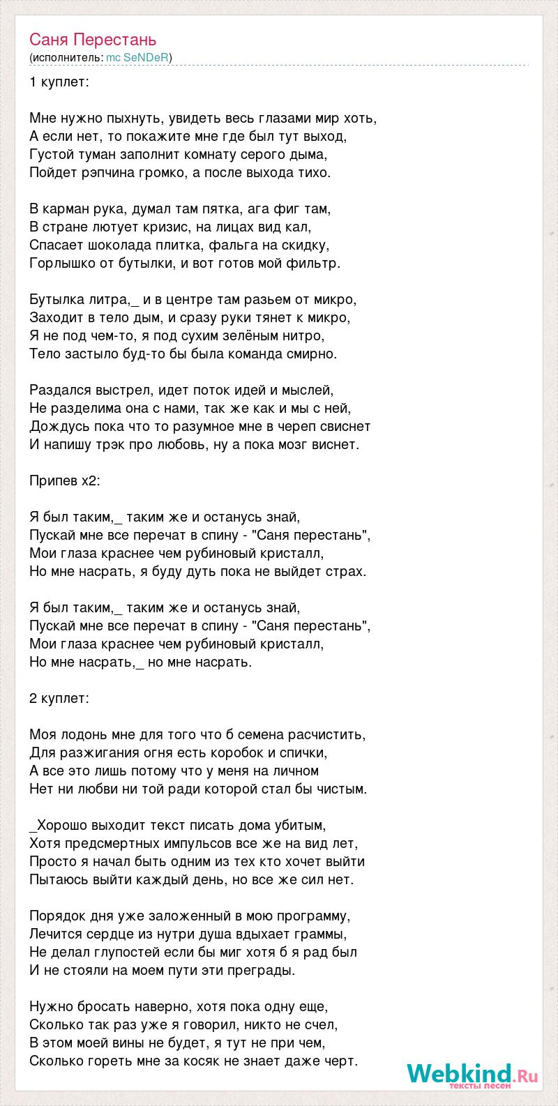 Саня трек текст
