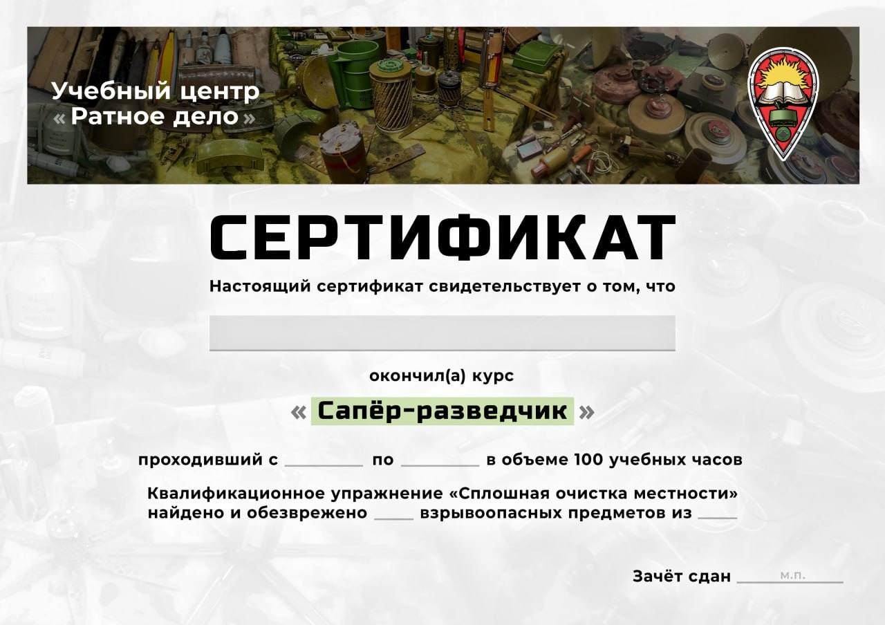 Недельный курс -Сапёр Разведчик, это первый и базовый курс для подготовки бойцов чья специальность связанна с сапёрным делом, а также, разведчиков, снайперов, БПЛА специалистов и всех тех, кто работает в непосредственной близости от линии боевого соприкосновения.