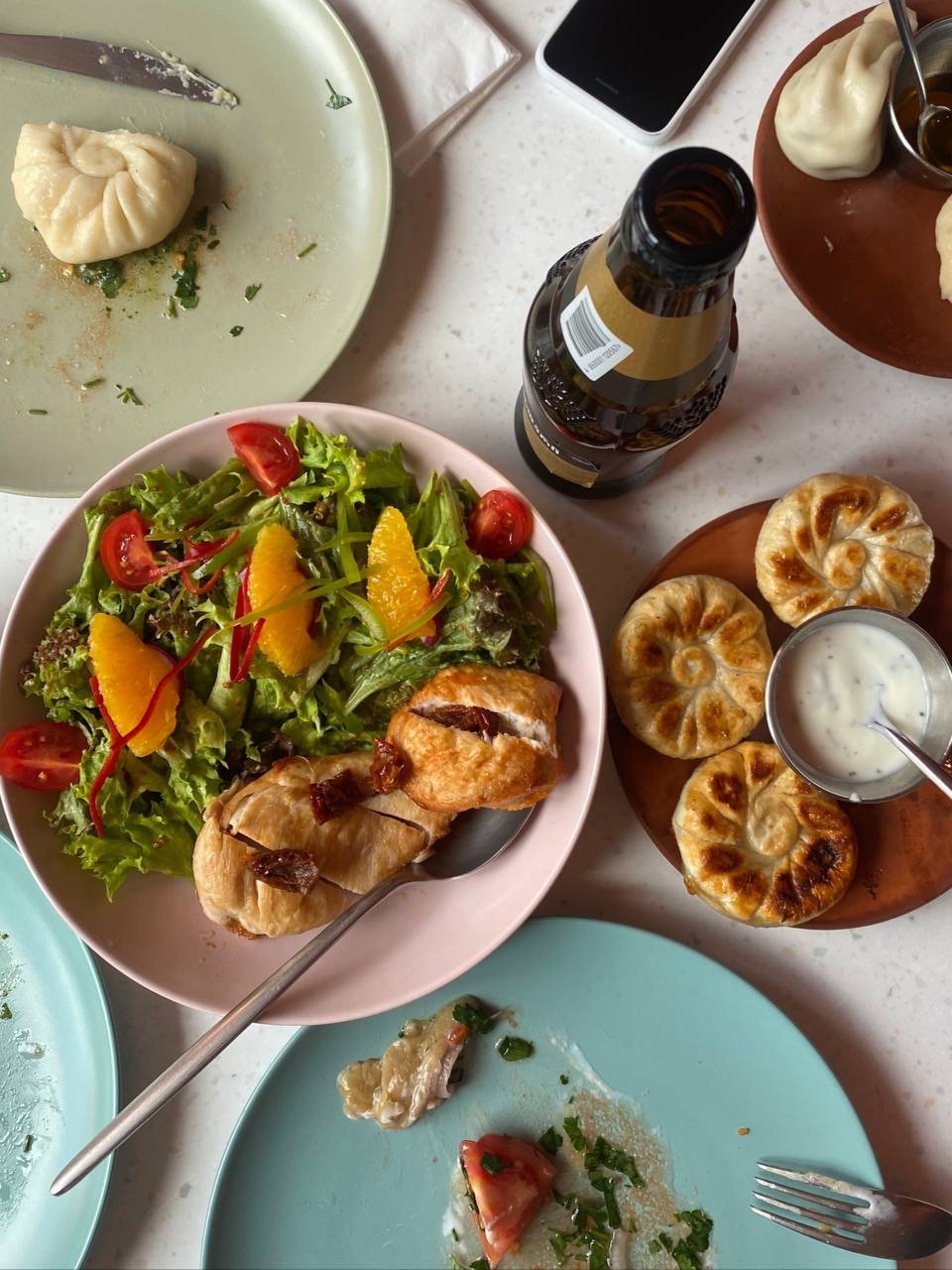 Модненькая хинкальная, где также можно заказать и healthy салат с куриной грудкой (очень рекомендую) и напомнить желудку вкус клетчатки в вашем углеводном загуле.